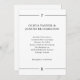 Den här djärva och påstående-skapar, svarta och vita bröllopsinbjudan har en enkel vit bakgrund med klassisk svart text. Modern linjer bildar ett gräns på översta sidan och grund, och sätter upp initialer.
