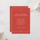 Den djärva och påstående-skapar bröllopsinbjudan har en ljus, vallmoröd bakgrund med klassisk vit text. Modern linjer bildar ett gräns på översta sidan och grund, och sätter upp initialer.