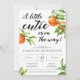 Modern liten kutik är på väg att ge orange till babyduschinbjudan till flicka med frisk citrusfrukt, sommarinbjudan, personlig, Ro ©