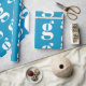 Modern ljusblå och vit anpassningsbar, första brev-typografi mönster-elegant-presenten Wrapping Papper. Anpassade vit text på ljusblå, solid bakgrund.