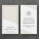 Modern, lodrät affärskort med ditt namn och titel på framsidan med en tunn svart gräns längs kant på kortet. Anpassade mall fält för kontaktinformation och logotyp på baksidan. Du kan ändra bakgrund och teckensnitt för färg, flytta och ändra storlek på inslag med verktyg.
