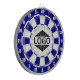Anpassningsbar logotyp på blå och vit karttavla. Bättre om bilden har fyrkantig form.