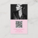 Modern shock rosa på affärskort för rosa av fotofyrkantig logotyp av pastellbild. Lägg till 2 foton, din logotyp, social-media och qr-kod för att visa din prisa lista, möte, portfölj med mera! Enkel shock rosa på pastellernas rosa med en cirkelfotomask och en elegant modern skriptpenseltypografi.