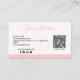Höj ditt varumärke med det här moderna Affärskortet för Rosa, med en mjuk palett för färg, minimalistisk layout och utrymme för logotyp av anpassningsbar och QR-kod. Designat för dagens professioneller för skönhet och livsstil är detta kort för elegant ett rent och professionell sätt att omedelbart kontakta sina kunder. Perfekt för nagel techs, hair stilist, lash artists, städning services och boutique business owner. Med den här mallen för anpassade kan du visa ditt varumärke i stil - oavsett om du bokar avtalade tider, delar en portfölj eller länkar till media i social.