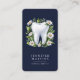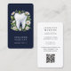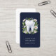 Affärskortet för modern och elegant Logotyp för tandläkare, designat för att ge ett varaktigt intryck. På framsidan finns två linjer text bredvid en sofistikerad logotyp med blommigtar mot en marin bakgrund. Anpassa baksidan med en QR-kod, mediahandtag i social och kontaktinformation för att förbättra anslutningen och tillgängligheten. Det här affärskortet är idealiskt för tandläkare, tandhygienister och andra tandläkare, och kombinerar professionalism med lite elegans. Det ser till att du står ut i fält.