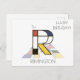 Ljusande, rolig, konstnärlig monogram. Här är bokstaven "R". Neoplasticism stil, eller De Stijl, linje och färg konstnärlig dekoration, den roliga fågeln sitter på bokstaven. Konstfältet ligger under bokstaven. Mallnamnet "REMINGTON" ligger under bilden. "Happy Birthday!" text nära bilden. Du kan ändra eller ta bort alla texter, och du kan ändra bilden. Unik, en av en sortens vykort för en födelsedag eller en annan händelse. Använd gärna knappen "Redigera design" eller "Personalisera" (allt eftersom fallet är) i blå färg för att ändra typsnitt, färg eller position för malltexten. Var kreativ, anpassa, köp en och var glad!