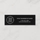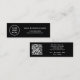 Modern och professionell svart miniaffärskort för ditt företag. På framsidan finns din logotyp, ditt företag namn och ett textblock för din slogan, kontaktuppgifter eller annan information. Ladda upp QR-koden bakåt så att kunderna kan söka efter en lista över dina produkter, tjänster, priser eller annan information och lägg till ytterligare information i enkel vit typografi.
