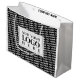 En anpassad, modern och stilren julvit logotyp-presentpåse med snygga svart-vita ''tack''-ränder. Lägg till din slogan, webbadress eller något annat. En trendig, minimalistisk och modern design för att sticka ut under denna högtid! Av 6ADesign