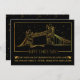 Modern London-bron "Lycklig-jul", guld svart helgdag-kort. Det här enastående kortet visar bron i London Torn i ram i guld med stjärnor och önskemål med stiliserad grovbär på sidorna på svart bakgrund.