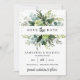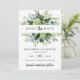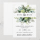Modern framstående inbjudan till bröllop spara datum-kort i löv, med grönt löv och färsk eukalyptus och guld glitter-sparkler, Ro ©