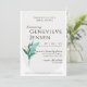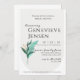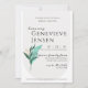 Modern inbjudningskort för möhippan med vitt, kräm, guld och en grön sprit.