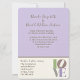 Modern filtbröllopsinbjudan i blekt lavendel på övre halvan och vit på nedre halvan. Grafisk färgrik text som lyder KÄRLEK, pryder nedre högra sidan. Anpassa den beigefärgade texten efter dina bröllopsbehov.