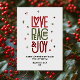 Personlig röd och grön julkort med retrotypografi, perfekt för familjer som vill skicka en stilfull och glad julhälsning. Detta platta icke-fotokort har frasen Love, Peace & Joy i fet blockbokstav, omgiven av lekfulla stjärnor i festliga rött och grönt, vilket gör den övergripande designen modern och iögonfallande. Idealiskt för kunder som vill ha ett unikt julkort utan foto, balanserar denna design vintage-julstämning med ren, samtida stil. Helt anpassningsbart med ditt familjenamn, år och ett personligt meddelande, är detta personliga kort perfekt för att skicka till vänner, släktingar eller kollegor. Oavsett om du firar med en stor familj eller skickar varma önskningar från fjärran, levererar detta kort festlig känsla med djärv design. Bra för dem som söker ett modernt julkort med retrostil som sticker ut i julposten
