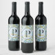 Modern Lövs Navy Guld Monogram "Brev P" Vinflaska Etikett