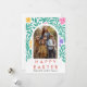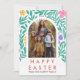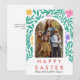 Bring your Easter greetings to life with this stunning botanical card featuring a lush arch of hand-illustrated teal leaves and vibrant spring blossoms. This modern masterpiece beautifully frames your cherished family photo, blending contemporary art with warm seasonal wishes for a truly unforgettable holiday keepsake
