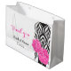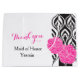 Visa din uppskattning för dina Maid of honor eller andra bröllop-assistenter med den här tacksamhetsgåspåsen. Perfekt att fylla med en eller flera speciella gåvor för att visa din uppskattning. Modern svartvit lyxdesign med ett fet stänk av shock rosa-nejlikor. Matchar den moderna lyxen-bröllop-uppsättningen. Anpassa/anpassa de här presentförmånspåsarna med titel, namn och ett personligt meddelande eller tack. För närvarande står det Tack Maid of honor Yasmin. Den unika konsten och utformningen av Sarah Trett.