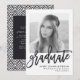 Bjud in vänner och familj till din examensfest med en chic, modern inbjudan till examensfest. Designen har en trendig skrifttyp, platshållare för en bild och anpassad text, samt ett svart och vitt art deco-mönster på baksidan.