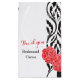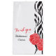 Visa din uppskattning för dina brudar eller andra bröllop-medhjälpare med det här tacket för din bröllopspresent. Perfekt att fylla med en eller flera speciella gåvor för att visa din uppskattning. Modern svartvit lyxdesign med ett fet stänk av ljusröda nejlikor. Matchar den moderna lyxen-bröllop-uppsättningen. Anpassa/anpassa de här presentförmånspåsarna med titel, namn och ett personligt meddelande eller tack. För närvarande står det tack till Bridesmaid Clarissa. Den unika konsten och utformningen av Sarah Trett.