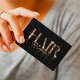 Ett lyxmodernt hårstilistigt affärskort med modern typografi är idealiskt för hårfrisör, hårsalon, hårförlängningar, torkar... Kontakta mig om du vill anpassa texten "HAIR". Folidinformationen simuleras i teckningen. Ingen faktisk folie kommer att användas vid skapar av denna produkt.