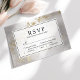 Modern Lyxig Grå Vattenfärg Bröllop med Guldfläckar RSVP-kort. Elegant sofistikerad samtida bröllopssamling utförd i en ombre grå marmor vattenfärg dimma med lyxiga gyllene fläckar. Denna anpassade eteriska drömlika bröllopsdesign kan enkelt anpassas med dina egna bröllopsdetaljer.