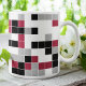 Detta vackra mugg har en roligt färgstark geometrisk mönster i trendig Viva Magenta, svart, grått och vitt. Kvadraterna är färgad i ett slumpmässigt mönster och du kan redigera färg i verktyg i Design.