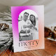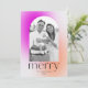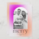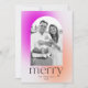 Unikt, modernt helgdag-kort som innehåller ditt foto som ramats in av en övertoningsbåge för magenta och orange ram. "Merry" visas i ett enkelt träkol-grått-tecken med familjens namn och år som visas nedan. Kortet för övertoning återgår till visningen av ett ytterligare foto med utrymme för anpassningsbarna.