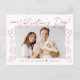 Dagkortet "Glad Alla hjärtans dag" i ett skript med magenta av trendiget med handdragna hjärtan längs kortsidorna på vit bakgrund. Vågräts foto visas nära mitten i designen. Anpassa Valentindagens vykort genom att lägga till ditt namn och året med magenta. vykortet återgår till visning av din returadress och ditt personliga meddelande.