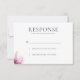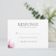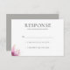 Ett svarskort från bröllop som koordinerar med vår rena, elegant- och moderna bröllopsinbjudan, med en enda rosa-färgad magnolia-blomma på en skarp vit bakgrund, och elegant mörk grått-text. Baksidan är i fast grått.