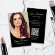 Skapa en professionell och ett modernt affärskort med ett anpassningsbar foto på framsidan och personligen, plus en skannerbar QR-kod på baksidan för enkla nätverk och redigerbara medieikoner i social. Justera enkelt typsnitt, färg, bakgrund och layout så att de stämmer överens med stil. Perfekt för konstnär, hårstilist, Beauty Salon och företag tittar att erbjuda en tankfull och professionell presentation!