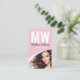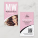 Enkelt Rosa Foto Modern Makeup QR Code Logotyp Monogram Affärskort. Ett enkelt minimalistiskt affärskort för små företag, eller individer som makeup artists, lash specialist, hårstilist med mera! Höger nu är det rosa, svartvit färgning, men du kan faktiskt byta ut färg mot spelar ingen roll som du vill ha använda! Modern djärv typografi som är professionell, både djärv och snyggt. Monogram initialer på framsidan och din logotyp och kontaktinformation på baksidan. En QR-kod som gör det enkelt för kunder att ta emot avtalade tider i bok eller se mer av din information och dina priser. Du kan lämna fotot som det är (precis som ett skönhetsfoto), eller lägga till ett eget foto!