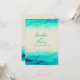 Vacker blå grönt målad havsyta med vinkar gnistra överlägg på sandig bröllopsinbjudan till stranden. En vacker strand, kusthav inspirerad, contemporary, bröllopsinbjudan med ett unikt stiliserat, hand-vattenfärdigt hav, på en färg-papper. Perfekt för ett modernt strandbröllop. Redigera den här inbjudan med ditt eget ord. Unik designad och målad av Sarah Trett för www.mylittleedenweddings.com