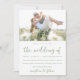 Vacker blommigt för fotobröllop med vår eller sommarblomma. Denna färgstarka inbjudan är ett chic för att informera inbjudna gäster om er kommande ceremoni i giftermål. Det här fantastiska tillkännagivandet har ett vackert kalligrafiskt skript "bröllop i" på en vit bakgrund med parets foto och ett söt boho-blommönster bakåt på kortet.