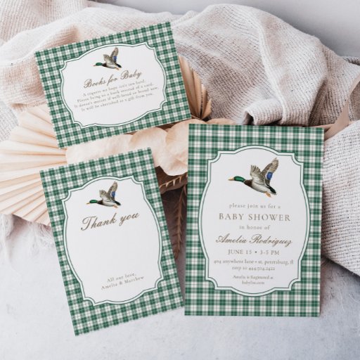Modern Green Gingham Mallard Duck Baby ShowerDesignad av S. Potter
