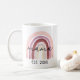 Modern Mamma Script Boho Rainbow Mugg Oavsett om du är en ny mamma som ska bli, bli etablerad mamma eller tittar en anpassningsbar gåva till en förväntad mamma, är den här moderna boho rainbow mugg den perfektens nyckelgåva. Den här designen har en söt bohemisk vattenfärgsregnbåge med mamman ord i ett modernt skript. Anpassa enkelt det här muggen med ett datum eller ett bestämt år efter ditt val.