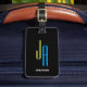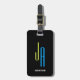 Modern, manar monogram personlig bagagetagg. Utformningen har ett monogram för trendig med initialer och ett namn mot en svart bakgrund. Anpassa ytterligare till adress eller kontaktuppgifter.