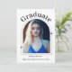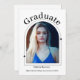 Postkortsinbjudan i grad firande innehåller ett foto av student, På framsidan, namn, skola och klassår finns inskrivet i avslappnad modern svart skrift.