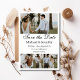 elegant moderna skript med fyra foton kollage boho spara datumet Inbjudan som du kan ändra teckensnittet färg, stil och storlekt.