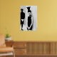 Öka ditt utrymme med den här fängslande svartvita utskriften, en mästerlig blandning av höggradig mode och konstnärlig minimalism. Det moderna muse i centrala figur väcker uppmärksamhet hos hennes oklanderliga stil: en slumpartad svart klänning, en elegant choker och ett enastående, avant-garde spiky-hörlstycke som når mot himmel. Hennes blek, nästan porslinsliknande hud och dramatiska öga-makeup skapar en oförglömlig visuell påverkan. I den mjukt suddiga bakgrunden lägger en mystisk man figur i en hög hatt och mörk till djup och förbryllelse på scenen. Biet, som har utgivits i enastående svartvit högkontrast, betonar form, struktur och sofistikerade silhuetter mot en pristinvit bakgrund. Perfekt för contemporaryns hem, mode-studior eller något utrymme som vill ha en aning dramatisk elegans, är den här utskriften perfekt för dem som uppskattar djärvt konstnärligt påstående och tidlös chic.