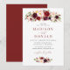 Modern manusburgundi och blommigt bröllop inbjudningar