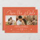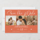 Trendigets minimalistiska snyggt ljusa orange och det vita moderna kalligrafiskriptet bröllop spara datum med 3 fotokollage. +++++++++ Lämpligt för bröllop sommaren. ++++++++++ Enkel att anpassa med bilder och information på båda sidor.