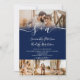 Modern marblå initialer-skript 5 foton bröllop inbjudningar