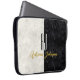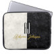 Modern, elegant, svart och vit marmor i kombination med gigantisk anpassningsbar initialer - monogram och guld fullt namn vid grund. Snyggt, contemporary, klassy laptop sleeve.