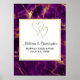 Ett bröllop poster med en vacker abstrakt mönster med en marmordesign. Blandning av rik lila färger i kombination med roterande rosett band mellan Faux och guld under hela konstruktionen. En kvadrat med faux guld-foil gräns överst med personlig inuti. @ gått med hjärtan ovanför texten.