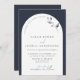 Modern marin blå båge, botaniskt skript Bröllop In Inbjudningar