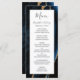 Den här eleganten har den moderna bröllop-menyn en vattenfärgsblå, blå, agate-bakgrund som trimmas med guld faux glitter. Texten visas i elegant, grått-handskrift och typsnitt på en vit rektangel. Den agate-designen upprepas på motsatt sida.