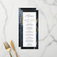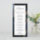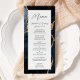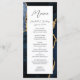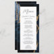 Den här eleganten har den moderna bröllop-menyn en vattenfärgsblå, blå, agate-bakgrund som trimmas med guld faux glitter. Texten visas i elegant charcol grått handskrift och sans serif typsnitt på en vit rektangel. Den agate-designen upprepas på motsatt sida.