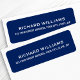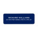 Modern, marin blå returadress etikett