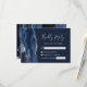 Det moderna kanten i denna elegant, som är lämnat i handen, har ett marint blått vattenfärgsagat gräns som trimmas med faux silver glitter. Rubriken "Kinely Reply" visas i handskriftsskript, med texten anpassade nedanför i det ljusa silver grått-färgteckensnittet på en marin blå bakgrund. Den omvända sidan har en matchande marin blå och silver-agate-design.