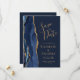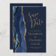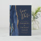 Det moderna bröllop spara datum-kortet från elegantens lämnat kant har ett marint blåfärgat agat gräns som trimmas med faux guld glitter. Anpassadet kombinerar handskrift, rityta och kursivt typsnitt med guld-färgad på en marin blå bakgrund. På den motsatta sidan kan du enkelt byta ut exempelbilden mot ett foto av framtida brud och triom och lägga till några linjer av ytterligare information, till exempel webbadressen till bröllop.
