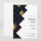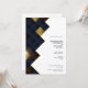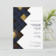 Gör ett djärvt påstående med den här moderna bröllopsinbjudan mellan marinen och guld med en snygg diamant mönster på en skarp vit bakgrund. Den lyxaktiga utskriften guld accents och den geometriska layouten ger en contemporary som vrider på klassisk elegans - perfekt för par som vill att deras bröllop ska känna sig sofistikerad, snyggt och oförglömlig. Idealiskt för kvällsceremonier i bröllop, stadsturneringar eller minimalistiskt firande, blandar inbjudan mode framåt med ren typografi. Fullständigt anpassade med namn, datum, plats och OSA. Observera att guld är en tryckt färg-effekt, inte en riktig folie.